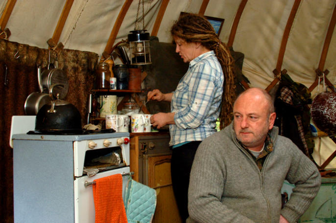 This friendly couple living in Tipi Valley, broke off from their gardening and very kindly welcomed me into their yurt