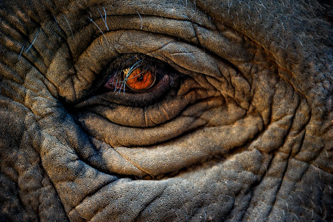 Elephant eye at Anantara Golden Triangle Elephant Camp & Resort, near Chiang Rai, Thailand.