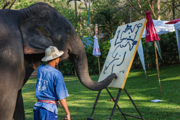 that the elephant is able to paint, at Maesa Elephant Camp in Chiang Mai, Thailand.