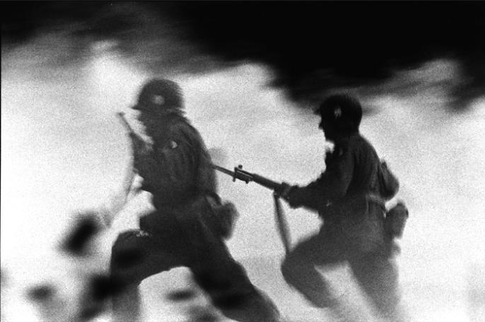 Band of Brothers was a television mini series produced by Tom Hanks and Stephen Spielberg and first aired in2001.The series followed Easy Company (part of the US 506th Parachute Infantry Regiment, 101st Airborne Division) from training to action during World War II. The real-life events depicted were taken from interviews given by Easy Company veterans.Stills for the film were shot by Stephen Spielberg’s preferred film-stills photographer, David James. Here, David describes his time on the set of Band of Brothers and choses some of his personal favourites from the film.“Every time I drive to my home I am reminded of my time on Band of Brothers. My route takes me on CA101; highway 101 is named the 'Screaming Eagles Highway', dedicated to the 101st Airborne. The series followed soon after I had shot the stills on Saving Private Ryan, it was exciting to get back to the Second World War. I often refer to myself as Dr Who with a camera.“One of the special memories of the 10 month shoot was a visit from a bunch of the real guys (the veterans), their camaraderie was a wonderful thing to witness, the Band of Brothers were as close as they had been since fighting side by side in the war. “Our actors on the series became their own BOB and to this day they have a yearly re-union.”David James