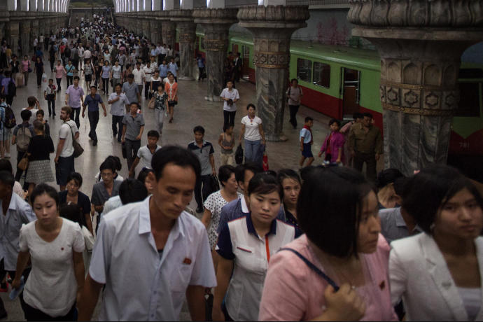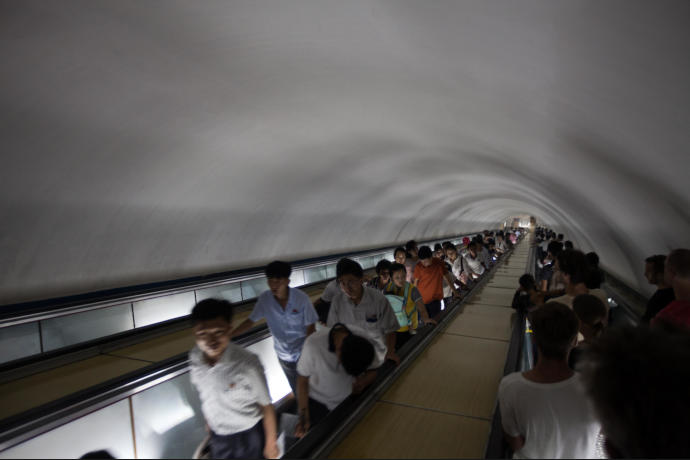 The Pyongyang metro is one of the deepest in the world. Here passengers travel on the escalators. It felt like