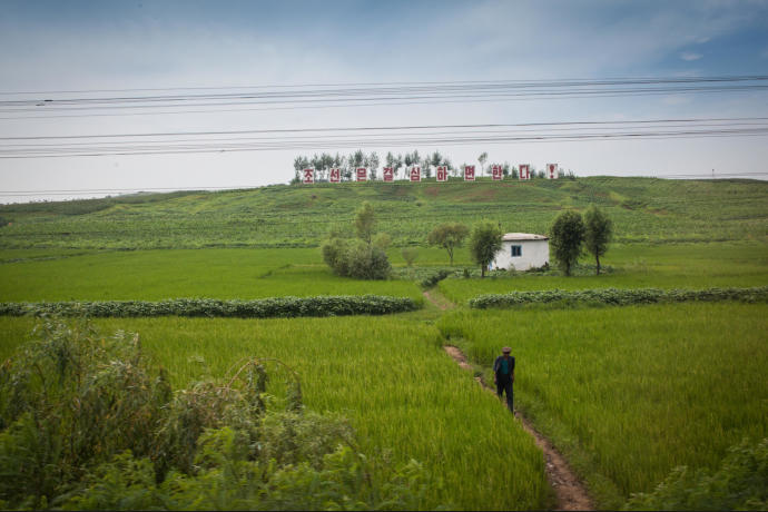 maize, and fruit production reminiscent of Swiss orchard techniques. There is no advertising in North Korea but signs