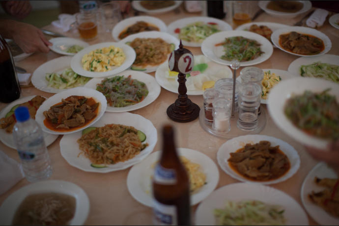 Traditional North Korean food is served in a restaurant in Pyongyang, North Korea.