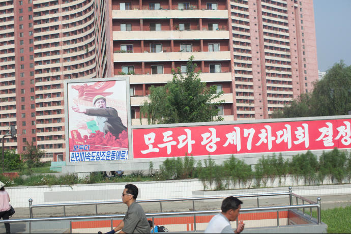 There is no advertising in North Korea. Signs and posters across the country encourage patriotic and revolutionary