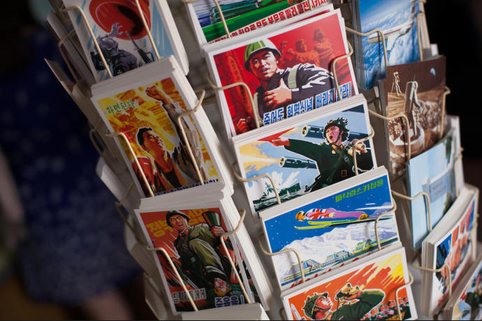 North Korean postcards encourage patriotic and revolutionary values and warn against American Imperialism.