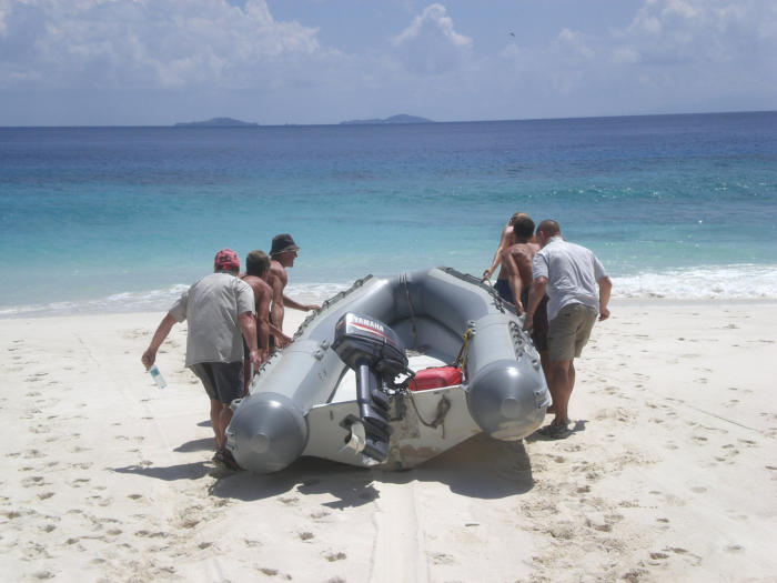 Preparing to launch the lightweight boat - Island life was a very physical one and extremely demanding on the body;