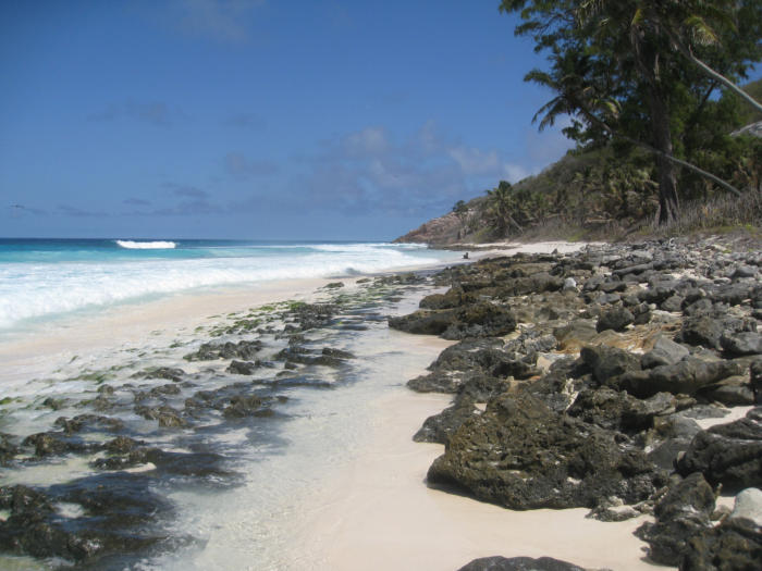 Rough seas eroded the beach to leave rocks which made boat work hazardous.