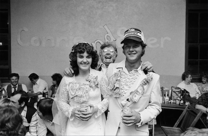 Connie and Einer Schou at their wedding dance in the community hall, Cuba, Kansas.