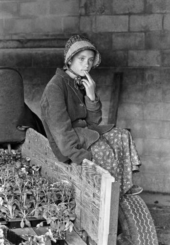 A Mennonite girl at the St. Jacob's farmer's market selling
