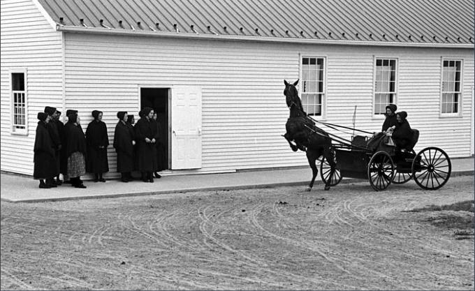 On Sundays, Mennonites in St. Jacobs congregate at their meeting place for about 300 people to worship God and
