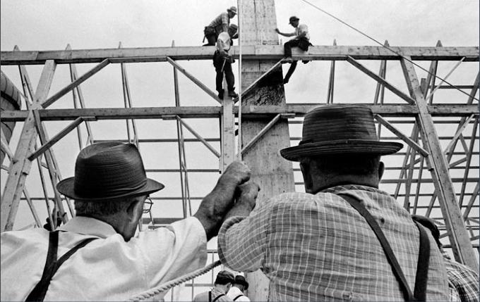 Mennonite communities do their own barn raising. Here they are building a new barn to replace the one that burned