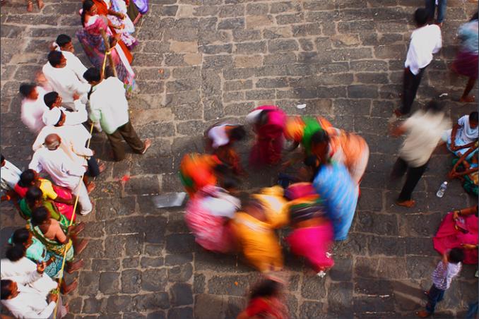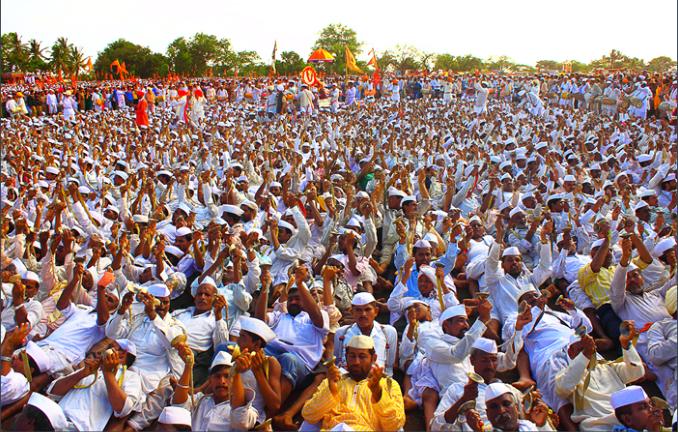 Warkari Singing Bhajans (devotional songs) and dancing to the rhythmic beat of cymbals and the mrudunga drum.