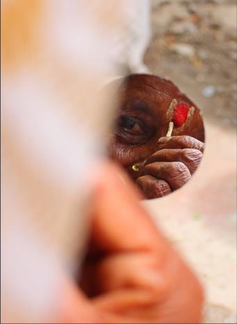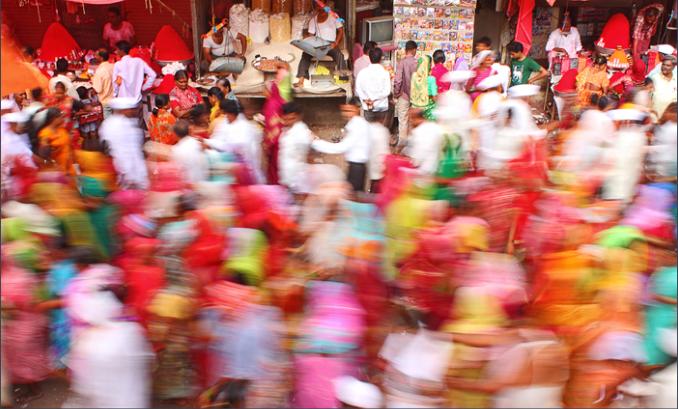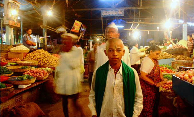 A young Mauli (Warkari) in a busy Pandharpur market 2-3 days prior to the Holy day of Ashadhi Ekadasi.