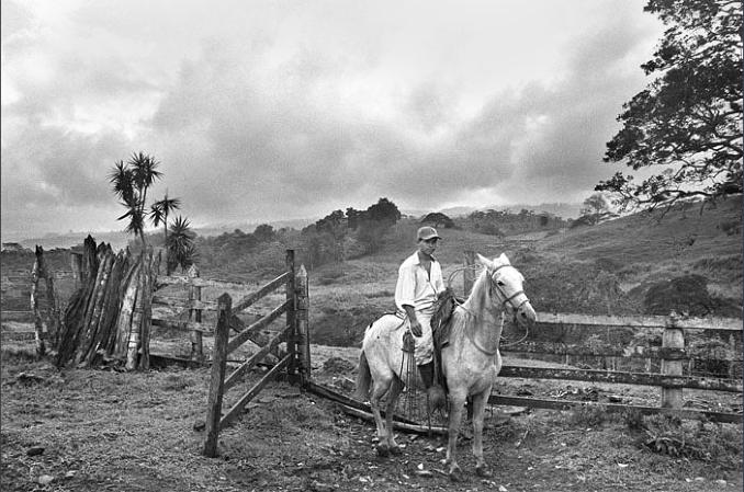 Nicaragua, 2003. A farm hand on his horse on the Hacienda farm in the Jinotega region.