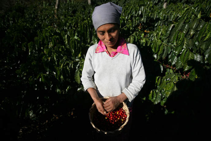 Angela Ramos, 29, picks coffee at a farm linked to the COSAGUAL coop. COSAGUAL, Cooperativa de Servicios