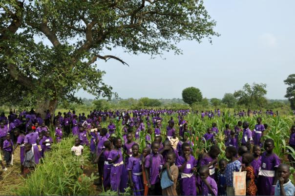 School children learning the new national anthem in preparation for South Sudan's declaration of