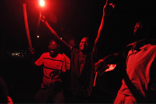 Just before midnight on the eve of independence, Southern Sudanese begin celebrating in the streets