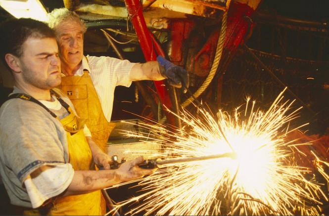one of the most dangerous. Steve, the youngest member of this three man crew (far left) told me that he earns £15K
