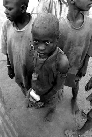 Coast, 1998. Most of the inhabitants of the town, including children, work on diamond mines - children can
