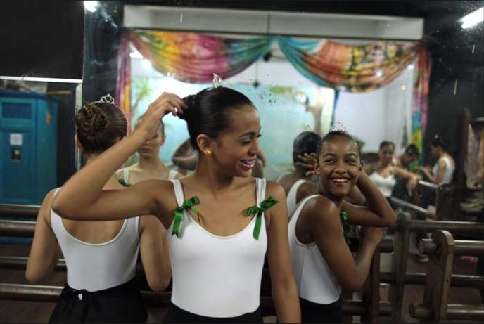 Girls fix their make up before their ballet class at the 'Ballet Santa Teresa' academy in Rio de Janeiro August 13, 2012.
