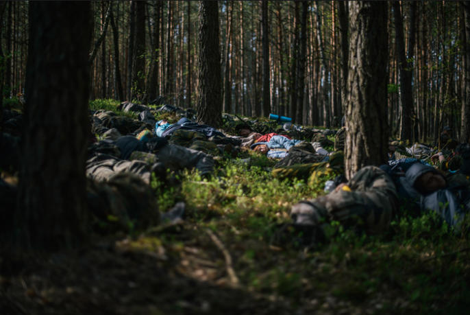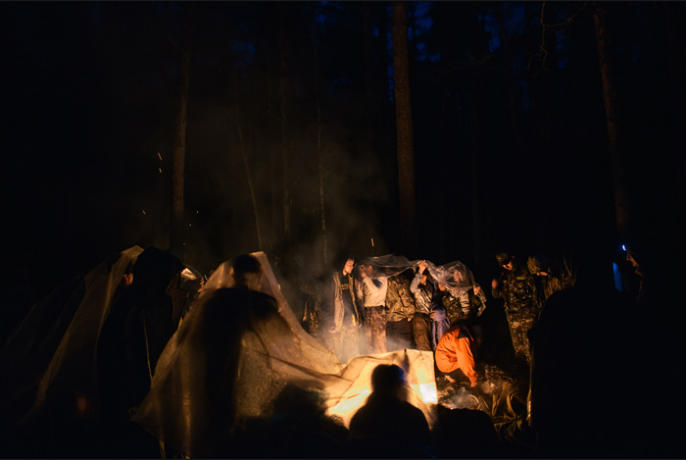 Players spending a sleepless night around the fire. Fire are usually not lit becasue they can reveal the position to the
