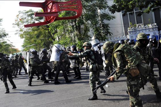 Phadung Krung Kasem intersection, Thai troops try to disperse the red shirts protestors who