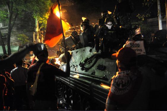 Beginning of the 'Battle of Bangkok' the night Seh Daeng was killed. Thai red shirt protestor