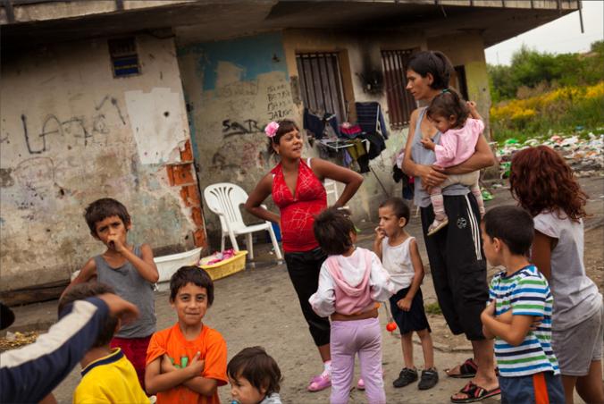 A group of Roma kids gathering in Lunik IX. Teenage pregnancy is the norm.