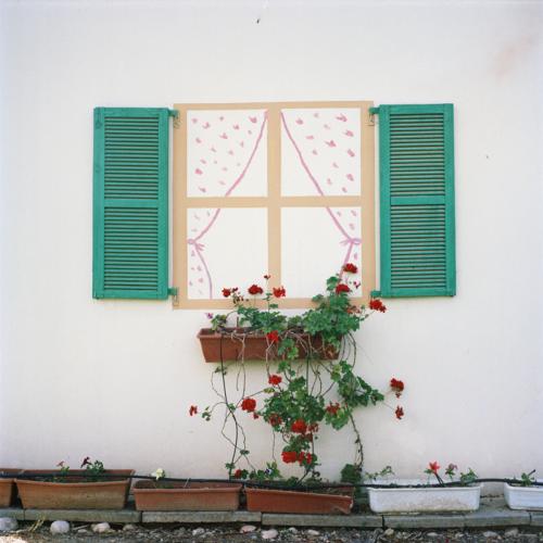 A fake window painted on a wall of a private bomb shelter in kibbutz Nahal Oz.