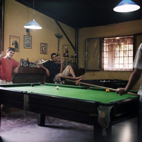 Young men playing billiards in the afternoon in a pub in kibbutz Nir Oz.