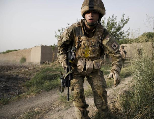 A British soldier from Burma Company The 1st Battalion The Duke of Lancaster's Regiment moves