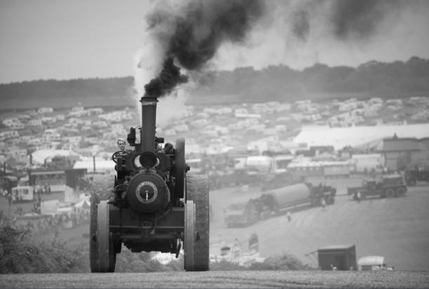 A steam engine lumbers up an incline as it takes part in a drive past of old engines at the Dorset Steam