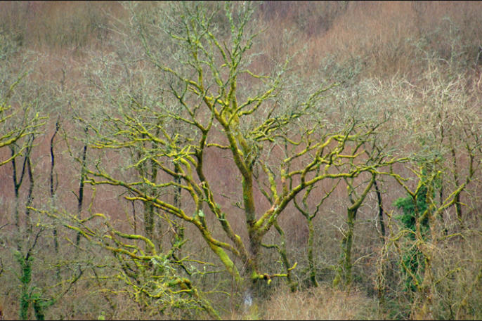 The moss on the branches of this tree in Tipi Valley reflected the light.