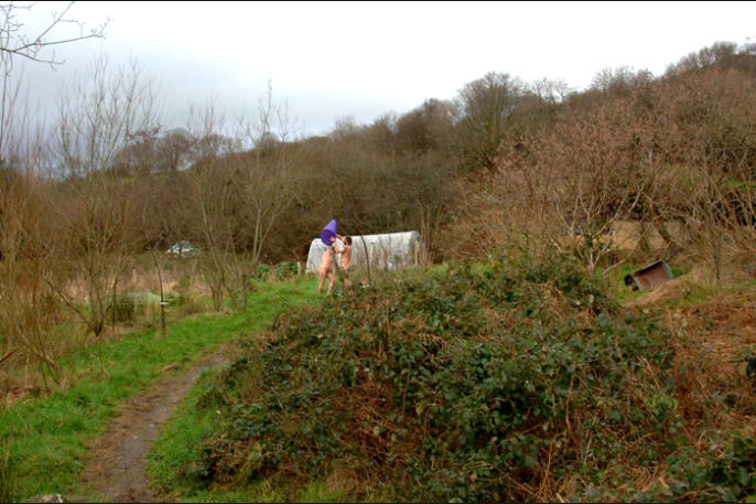 ‘Tea’s up’ This couple cut a flat, solid, base out of the Welsh hillside in Tipi Valley upon which to errect their yurt home.