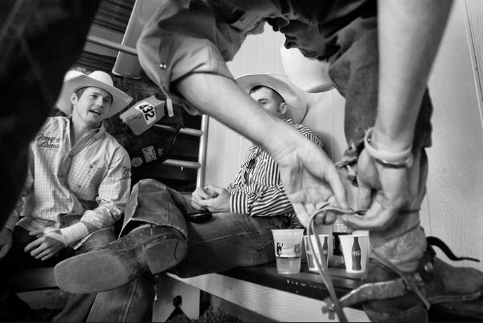 Rodeo venues have cowboy dressing rooms where participants network and prepare for pending events. Competitors