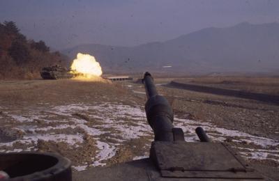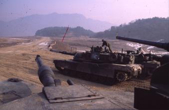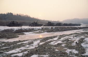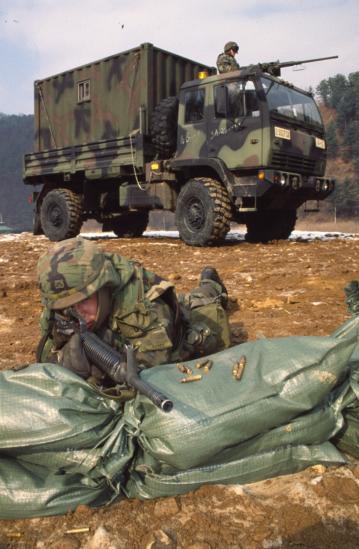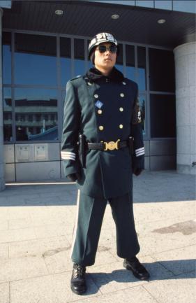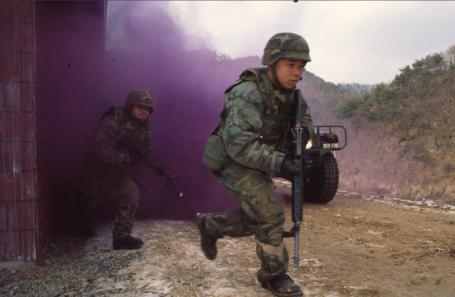 South Korean guard in ROK-ready position - a Taekwando stance that is