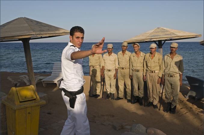 DAHAB, EGYPT: A Mubarak era police officer stops the photographer from taking a pictures in Dahab, Egypt.