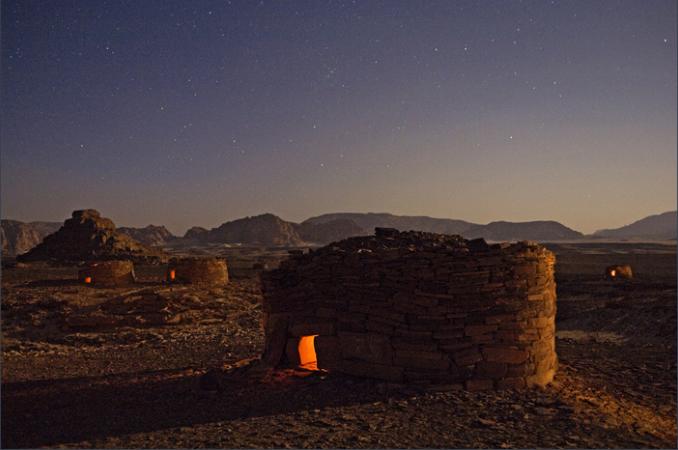 SAINT. CATHERINE, EGYPT: Nawamees stone structures are illuminated by moonlight in the desert between
