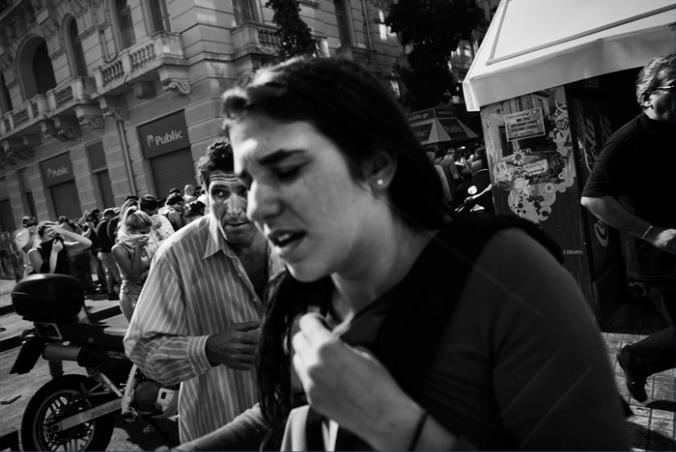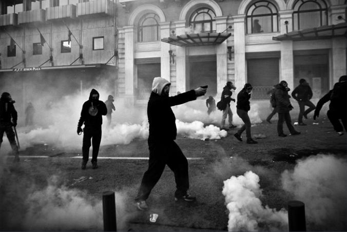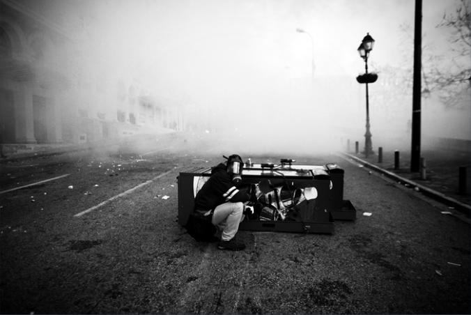 A young protestor tries to recover after being attacked by riot police as severe clashes took place in central Athens,