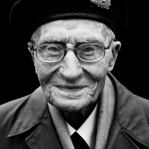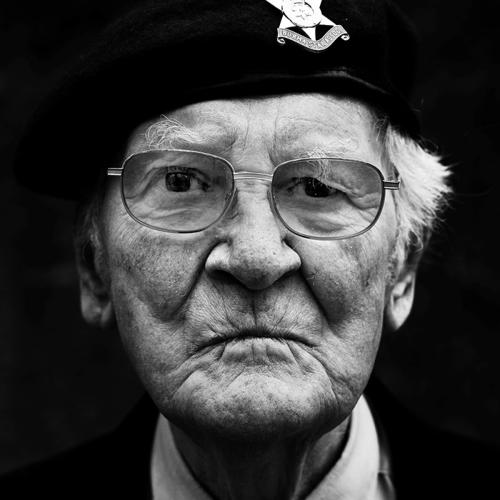 of portraits of war veterans who gathered as part of the commemorations which are held across the UK in honour of