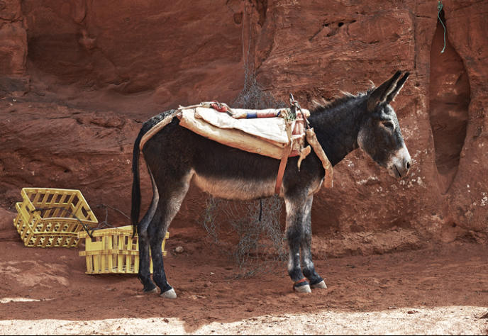 The mule plays an important role in transport for the bedouin people. Although slower and smaller than their equine