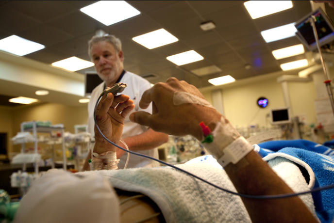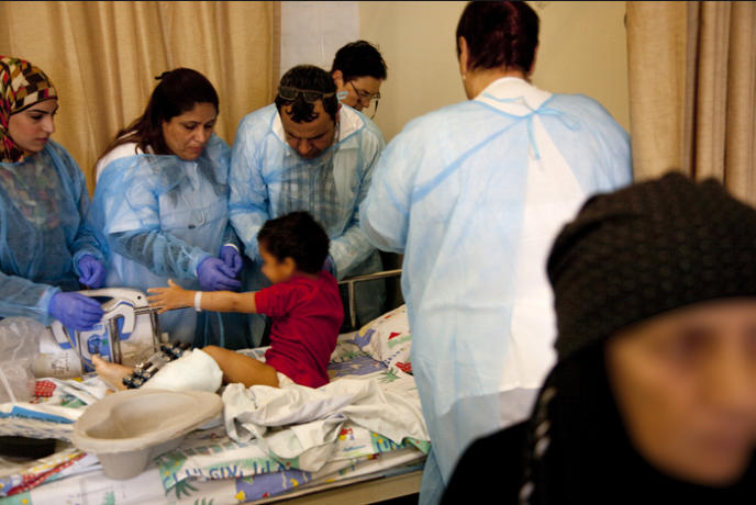 wounded Syrian. The hospital makes every effort to save limbs because of the difficulty for amputees back in Syria,
