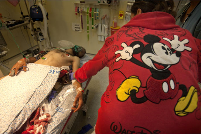 hospital without his parents or any adult. The faces of Syrians in this story have been obscured because of the threat