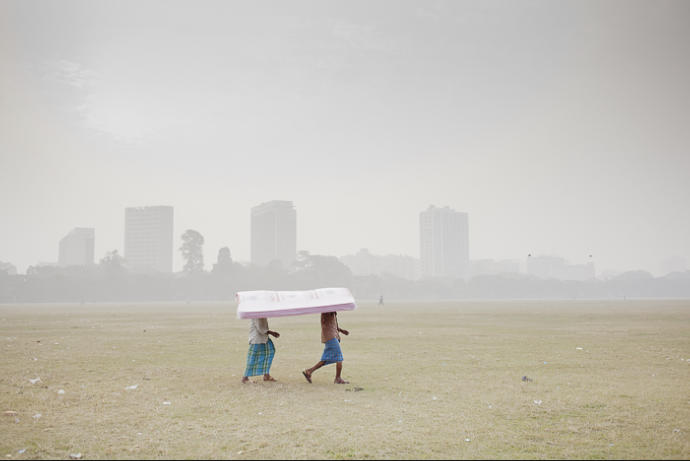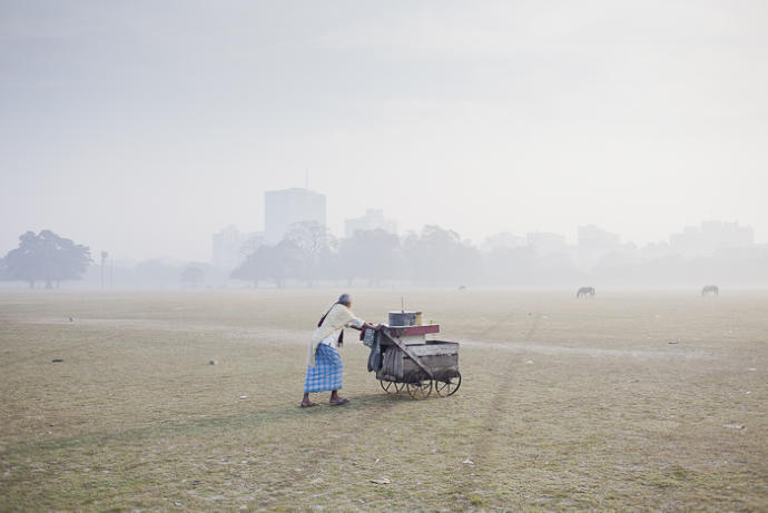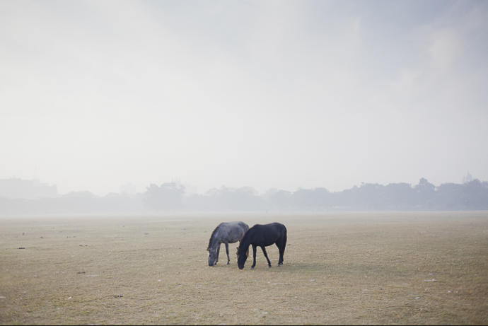 In 2012 I first travelled to Kolkata. Like many other metropolitan cities it is full of traffic, buildings, narrow lanes, dust and polluted air. But then I came across Maidan park. This vast open field was a relief. The next three days of my stay in Kolkata I often visited the park and photographed it. Although it is at the core of the city, it seems totally separated; a world within a world.