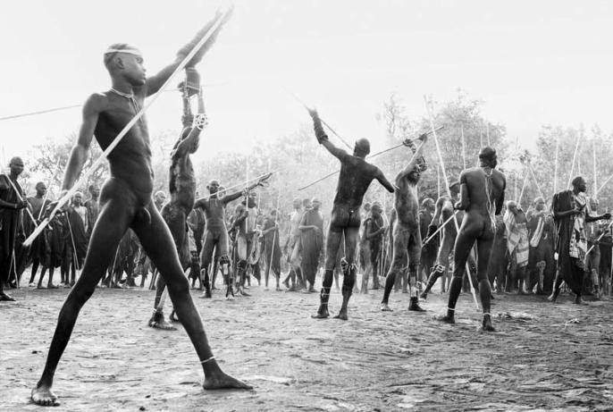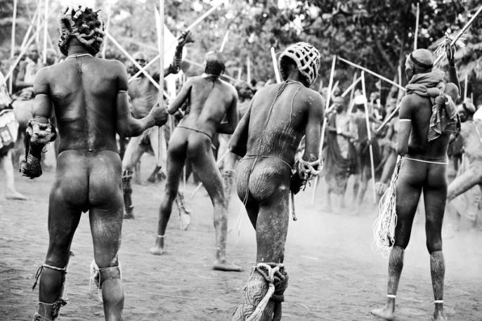This is in the Omo Valley in Ethiopia before a stick fight (Donga). It is a ritualised fight between villages and individuals