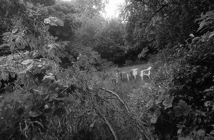 once cultivated garden has become a neglected wilderness, in the absence of the two people who had spent long days