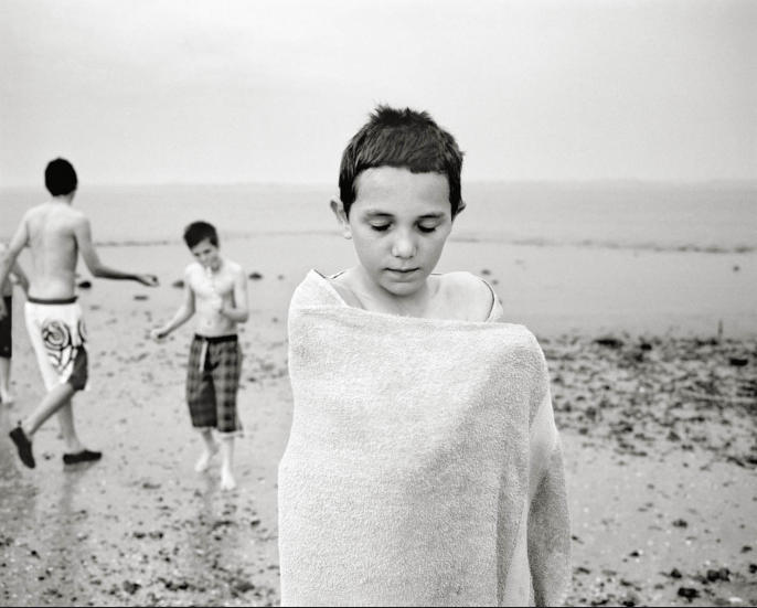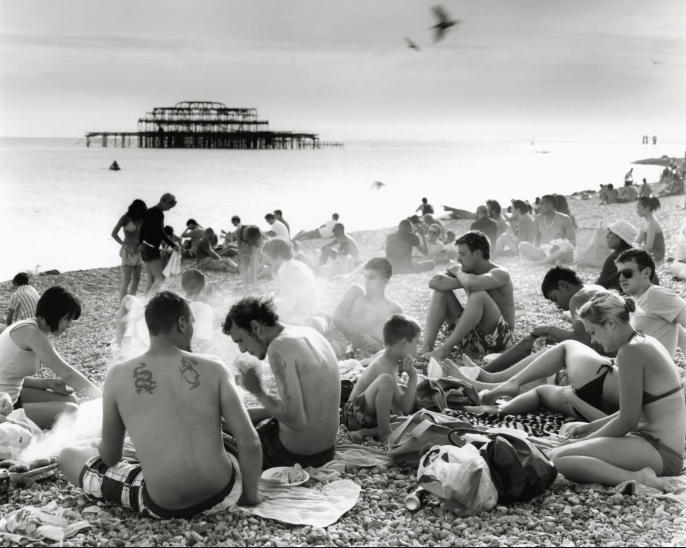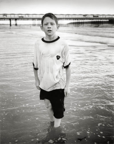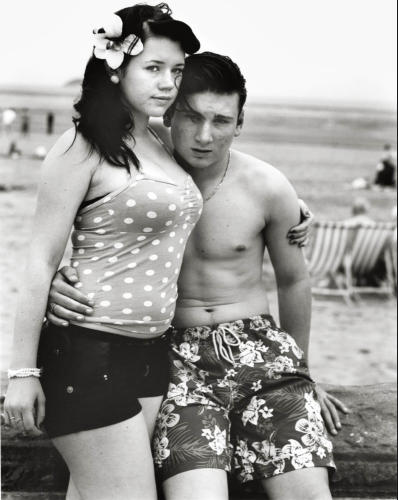 No matter where you are in England, you are no more than a few hundred miles from the sea. There is an unexplained attraction to the edges of the land. England is an island nation and the sea has a mysterious power on the psyche. People are drawn to the seashore. The sea is expansive and allows the mind to be free and the imagination to slip off to far away places. An island is,however, confined. This juxtaposition encourages an interesting mix of people. English summertime is short; not always sunny. Seaside towns are full of the old Grandeur of long ago. They are fragile places; joy is tinged with the sadness of the passage of time. Sheila Rock’s photographs and portraits express a great deal about the uniqueness of the English. They have resolutionof spirit and strength. They have courage to sunbathe on rocky coasts, laugh in the pouring rain and stand in the mud when the skies are forever grey. Tough and Tender together.