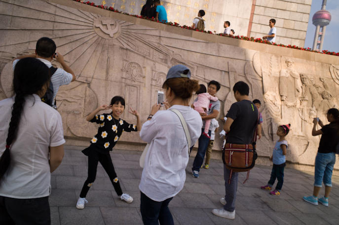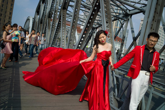 Newlyweds on the Waibaidu Bridge, Shanghai, China.