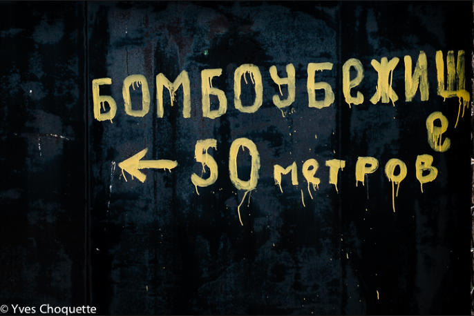 Bomb shelter, 50 metres on the left.