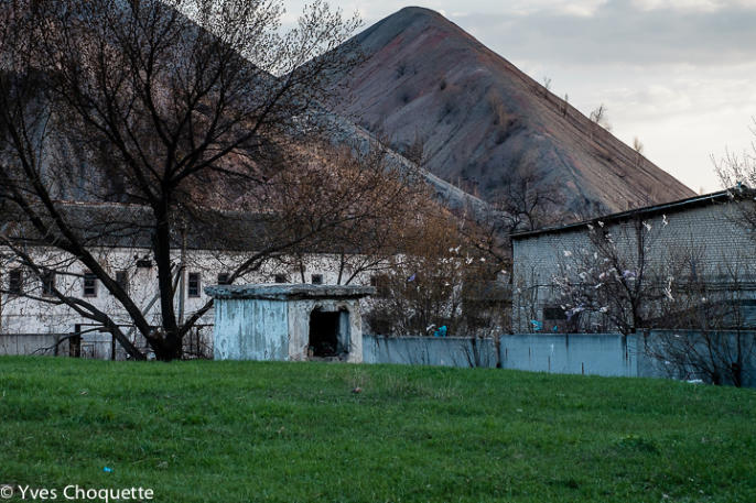 Behind the entrance of the bunker is the coal mine which owns the bunker. It's initial use was for coal mine employees